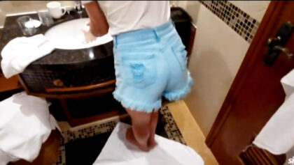 STEPMOM IN THE BATHROOM enters to fuck with her own stepson, REAL HOMEMADE