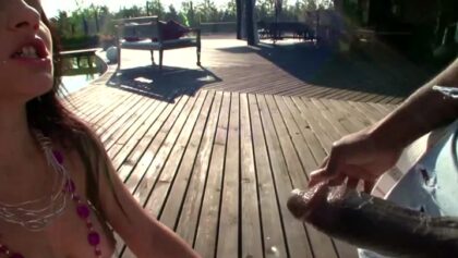 Beautiful oiled babe gets anally slammed outdoors by BBC