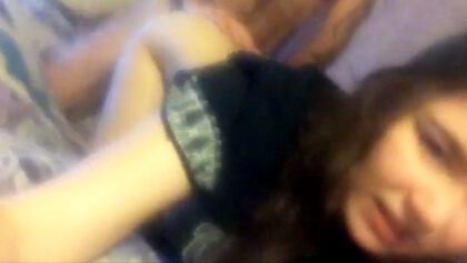 Gorgeous, thin, brunette records daddy’s dicking in a selfie style vid